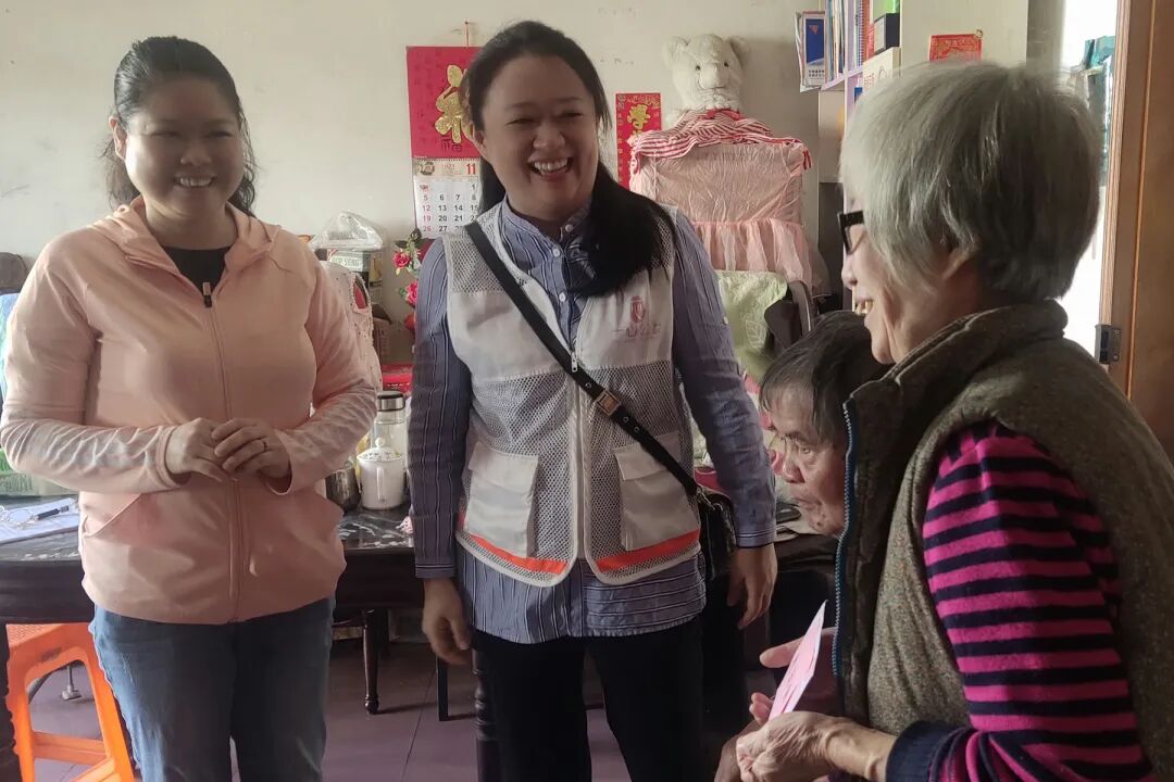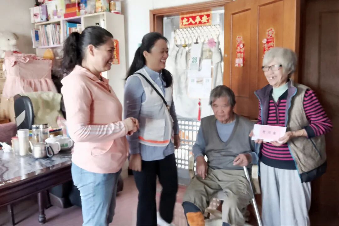 家访过程中,队员向两位老人送上问候,关心他们的身体状况、日常起居和经济情况,并给老人们送上慰问金和诚挚的祝福。志愿者们的到来让两位老人非常开心,他们拉着大家的手说了很多家常话,现场气氛其乐融融。