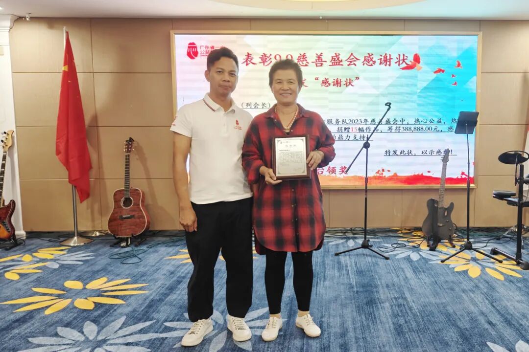 颁奖环节中,大会向捐款、捐物的爱心人士、爱心企业颁发了感谢奖。