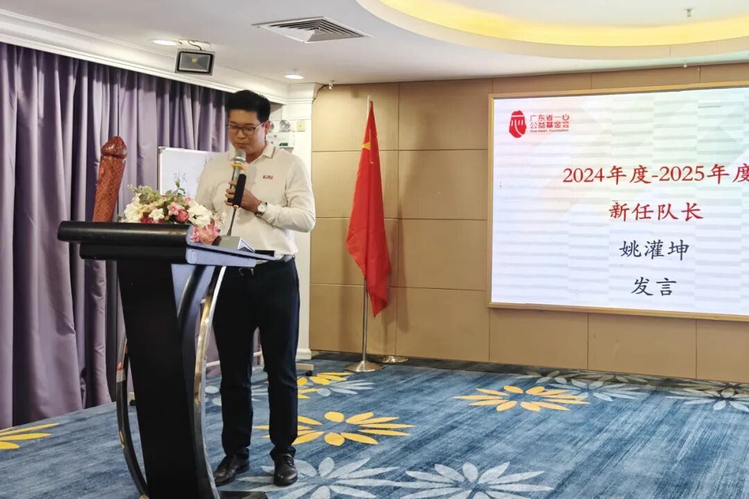 接着,新一届的服务队理事会召开了第一次理事会议,明确了主要委员会主任。新一届理事及主要干部亮相,并由基金会理事李部亮向新一届服务队队长姚灌坤师兄授旗,现场响起热烈的掌声,祝贺新一届领导班子成立。