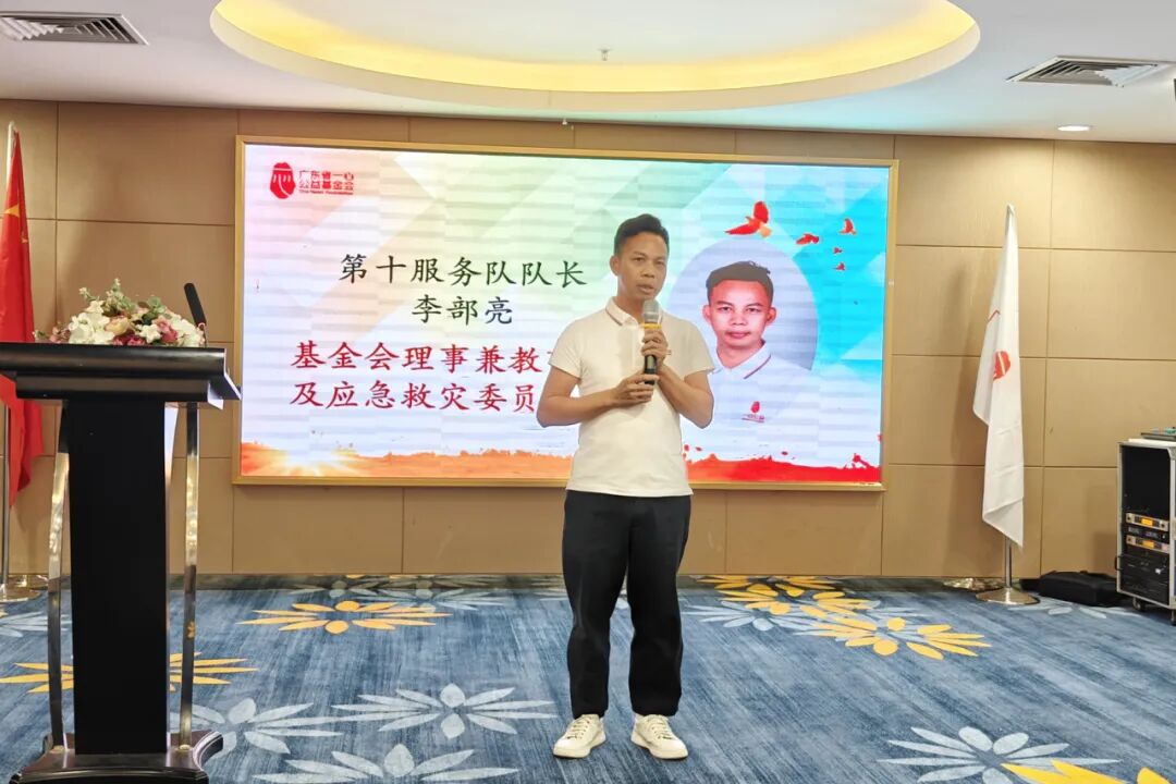 首先,基金会理事兼第十服务队队长李部亮致欢迎词,对亲临现场的每一位友队的师兄师姐、第十服务队的全体队员表示由衷的感谢。