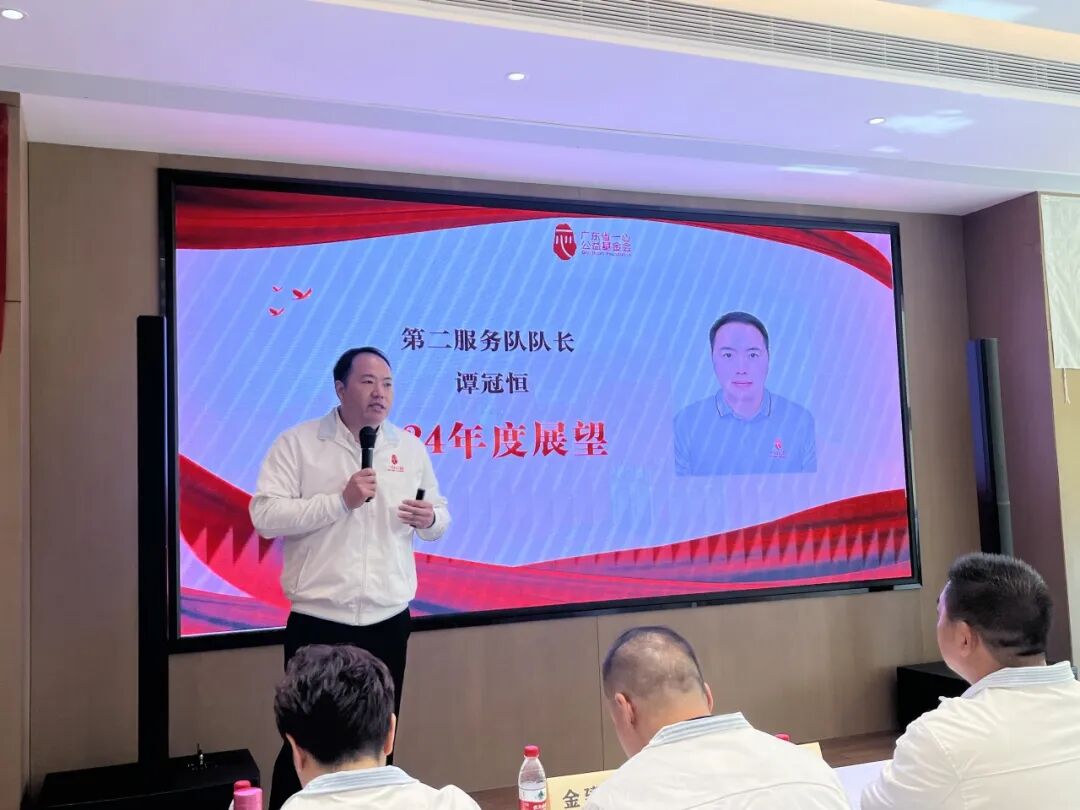 接下来,谭冠恒队长做第二服务队2024年工作展望。他表示第二服务队将继续规范队务管理,明确分工,做好本地服务活动,包括应急培训、敬老活动、“救心”项目、乡村振兴服务等,并积极扩大服务活动范围,帮助更多需要帮助的人。