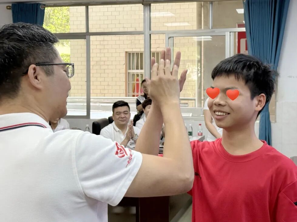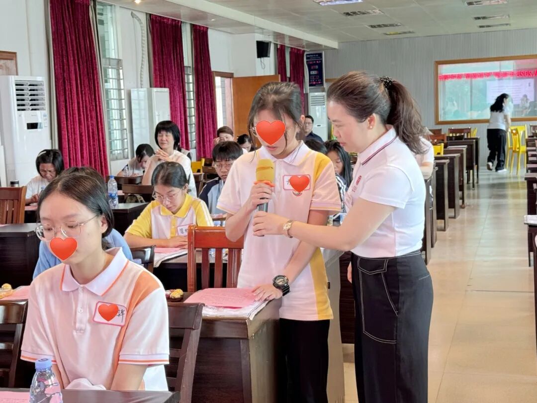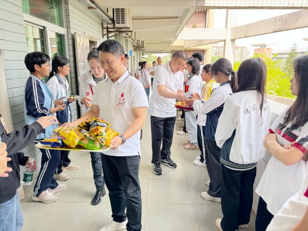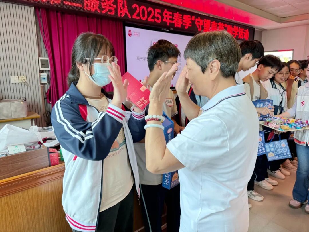 在信宜市区教育城的活动中,志愿者们齐拍双手,共同唱响欢迎歌迎接同学们的到来。活动现场,气氛热烈而温馨。志愿者们满含关切,为信宜市区的12 名即将参加高考的同学递上精心准备的考试用品套装,每一份都承载着对他们未来的美好期许。同学们深受鼓舞,纷纷昂首喊出目标院校,声音响彻现场,将气氛推向高潮。志愿者们表示,待高考结束后的暑假时光,他们会再来看望同学们,继续传递温暖与支持。