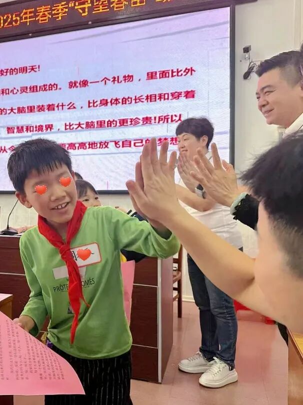 4月16日清晨,服务队队员和爱心志愿者从东莞出发前往信宜市怀乡镇,为同学们发放2025年春季助学金。活动开场,队员方群英带领同学们做手语操,现场氛围活跃。游戏环节,大家一起参与“消失的矿泉水”游戏,欢声笑语不断。