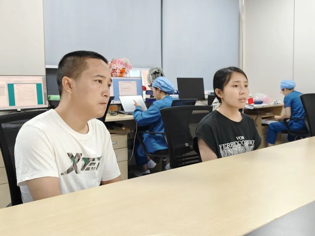 在省妇幼二楼心脏中心,队员们见到了小程的父母。小程于2024年1月出生,出生时未被查出患有先心病。2025年4月,小程因异物梗阻入院,在检查过程中被诊断出患有先天性支气管畸形和喉软管发育不良。
