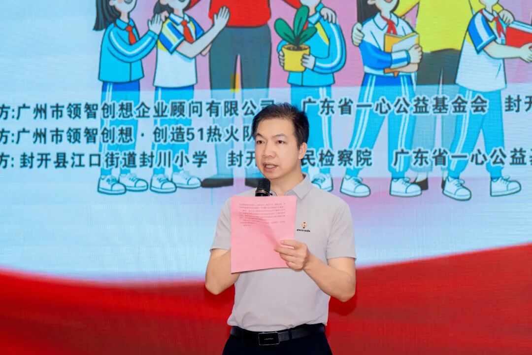 在活动仪式上,江口街道中心小学副校长彭振钊致辞,他向广东省一心公益基金会、广州市领智创想·创造51团队以及各协办单位表示最热烈的欢迎和诚挚的感谢!