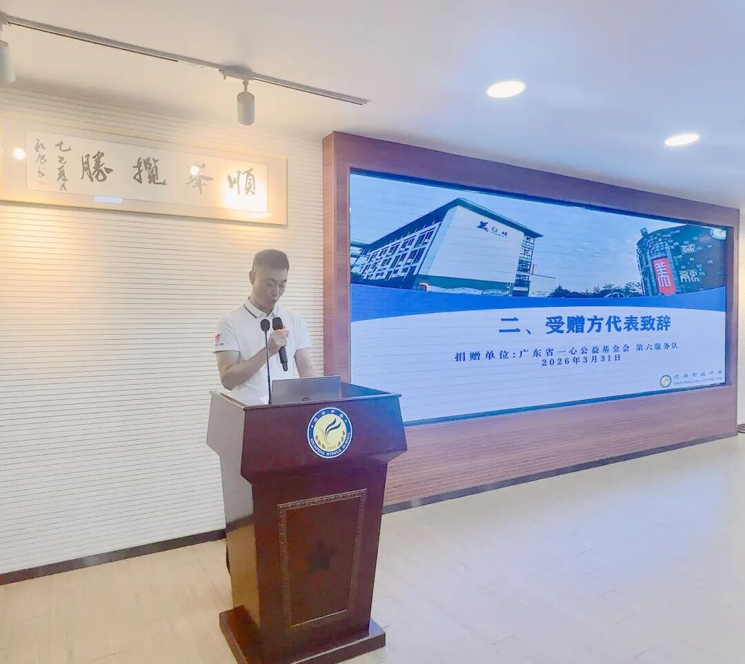 2026年3月31日,广东省一心公益基金会第六服务队走进顺峰初级中学,举行应急救护培训暨AED捐赠仪式,用公益力量为校园安全保驾护航。