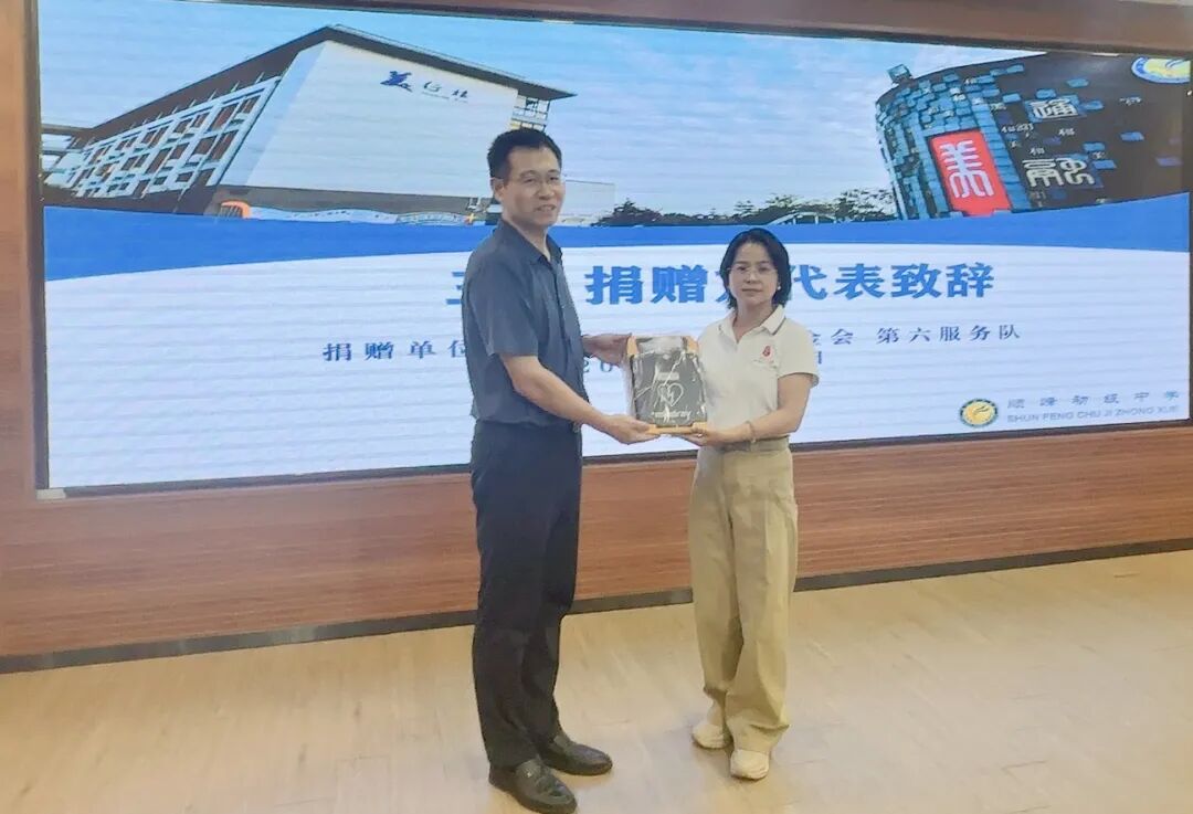 仪式现场,第六服务队代表及顺峰初级中学负责人、佛山福沃德医疗科技有限公司培训导师及师生代表出席活动。校方负责人对第六服务队的善举表示感谢,表示此次捐赠与培训填补了学校急救硬件设施的短板,学校将妥善保管和使用AED设备,常态化开展急救知识普及。