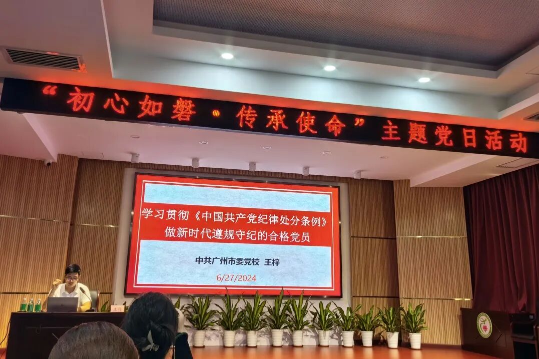 在烈士陵园,党员们重温入党誓词,以铮铮誓言作出一名共产党员的郑重承诺,表达不忘初心、牢记使命的决心。接着,党员们参加了由广州市委党校政治学与法学教研部副教授王梓的《中国共产党纪律处分条例》党课学习。