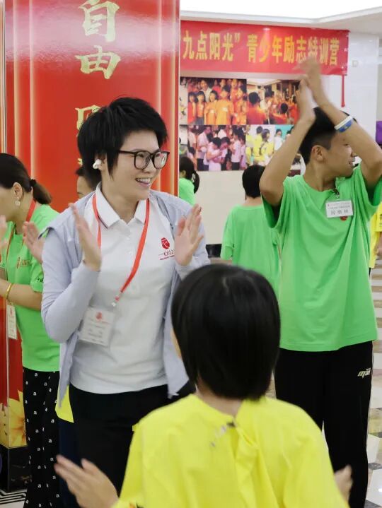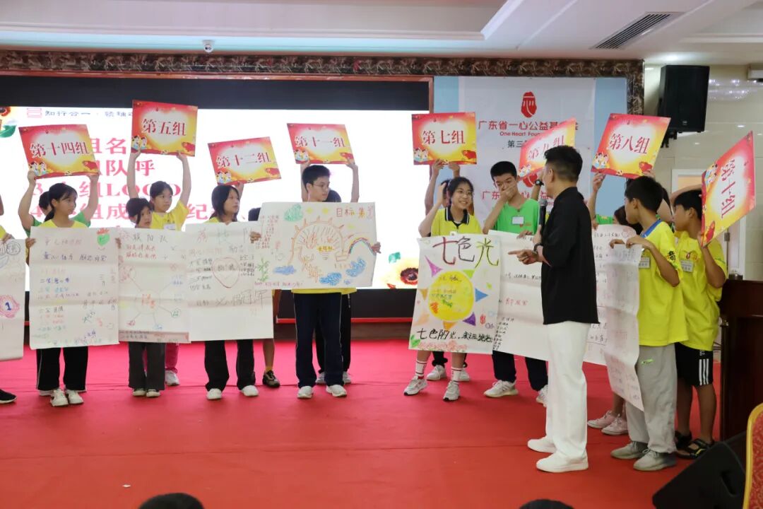 基金会理事、第三服务队队长麦卫红上台发言,“九点阳光”活动专注于支持困境儿童身心健康,从2013年开始,该项目在肇庆地区已连续开展9年,累计对1555名青少年儿童进行心灵励志辅导,相信在这三天里,孩子们都会从中收获友谊、收获成长、收获幸福。